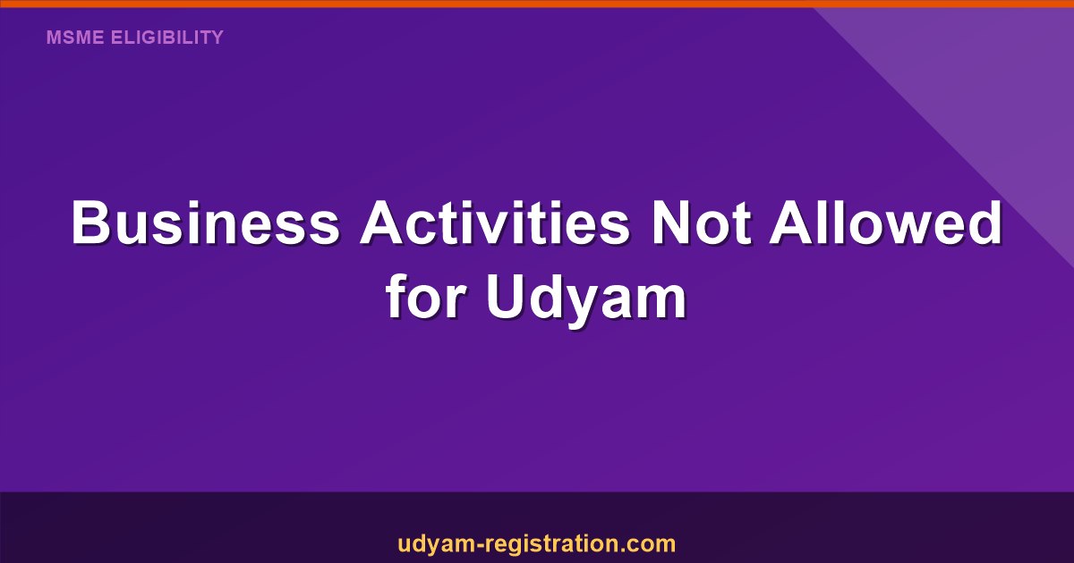 Planning to apply for Udyam Registration but unsure if your business activity qualifies? Not every type of enterprise is eligible for the MSME Udyam certificate. This guide lists the specific business activities that are excluded from registration, so you can verify eligibility before you apply.
